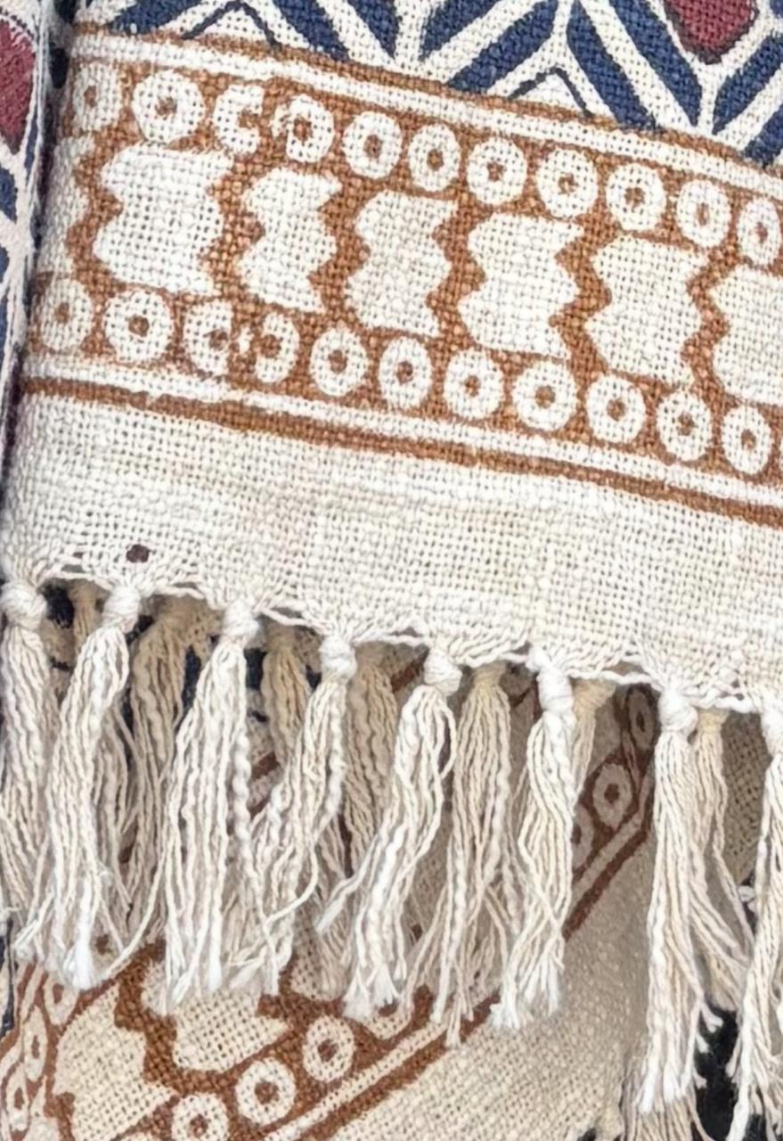 Infuse your home with eclectic charm through our Bohemian Style Geometric Hand Block Printed Throw with Border. Crafted from 100% loom-woven TNT cotton fabric, this artisanal piece is designed to bring both comfort and character into your living space.
